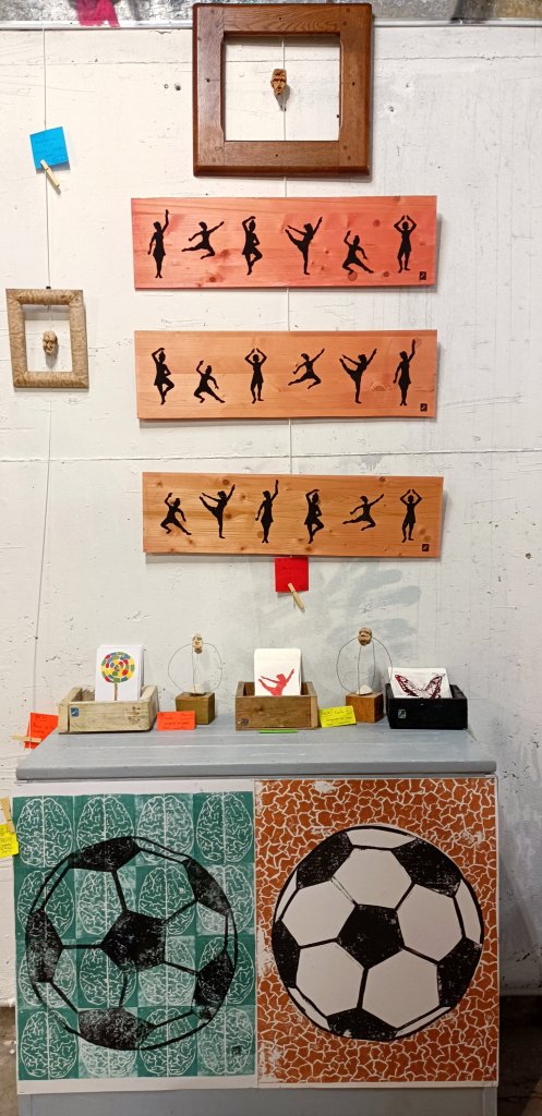La vitrine éphémère a fait peau neuve. La place du marché de la chèvre aussi. Si vous cherchez des cadeaux de Noël originaux, allez y faire saut, c’est à 2 pas du marché de Noël et il y fait plus chaud ! Pour l’occasion je vous ai préparé des œuvres sur des thèmes plus légers et à prix cadeaux ! En plus de la série des danseuses sur bois, en hommage à mon ami Edgard, vous trouverez une petite collection de cartes numérotées et signées, quelques affiches et toujours de vielles patates pour surprendre vos amis à Noël (« Si, si je te jure il m’a offert une patate de 2014 ! »). On se retrouve là-bas pour en discuter mercredi prochain. Ou si vous préférez il y a toujours le Boucl’art à Nancy jusqu’au 10 et l’atelier de Seichamps en mode atelier du père Noël, commandes à faire avant le 22 décembre !