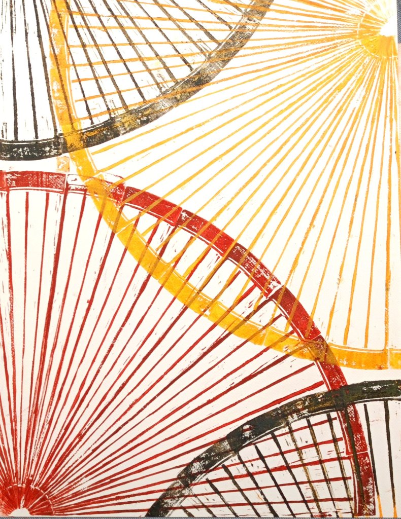 C’est vous dire si cette toile me tient à cœur. Enfin à l’intestin. L’estampe utilisée pour le réaliser est un morceau de lino de 25cm imprimé 24 fois. Un tube d’environ 6 m de longueur. La toile ne coûte que 250 euros, mais c’est une pièce unique. Si vous aviez investit dans le Durupt , vous n’auriez payé que la moitié, le cours vient de passer à 2 €!