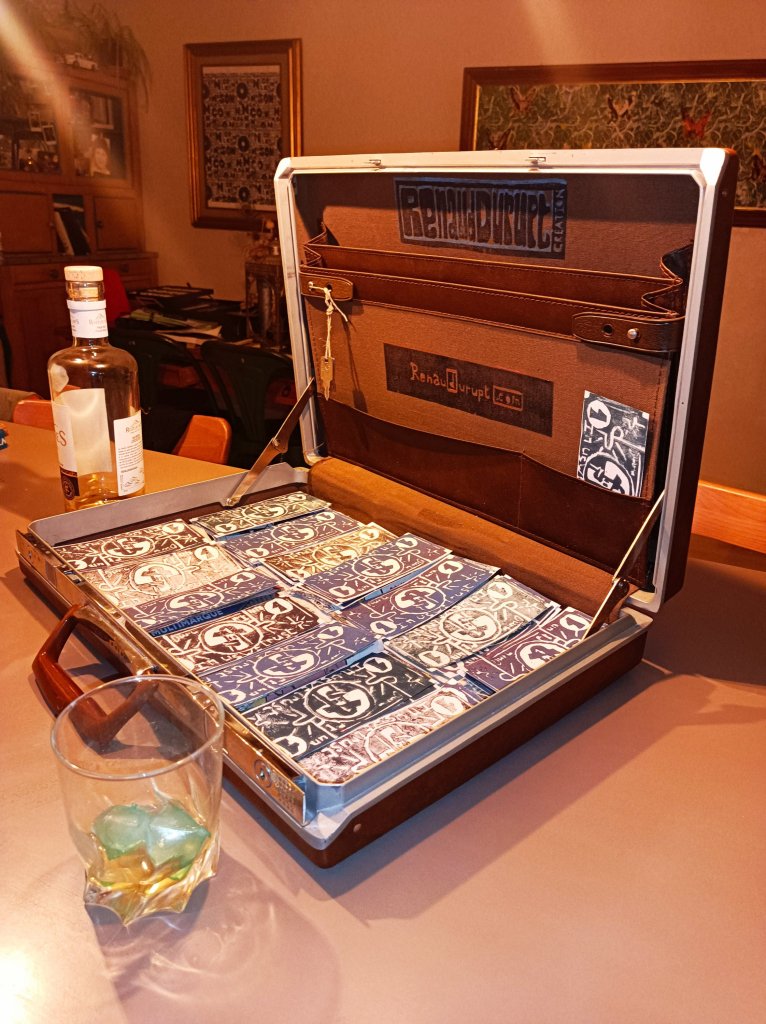Retrouvez l’installation en septembre et venez faire tourner vous même la planche à billets à la vitrine éphémère à Metz. En attendant la mallette reste au coffre. Le code c’est 0000. Les billets sont numérotés et pour l’instant je suis le seul à les accepter, mais ça me flatterait que vous fassiez l’effort de les voler!
