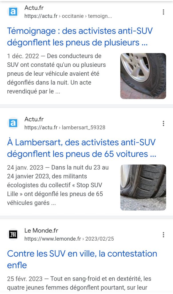 Pas tous apparemment . Je n’ invite évidemment pas les propriétaires de SUV à écourter leur vie. Simplement à recycler leur belle auto en boîtes de conserves !