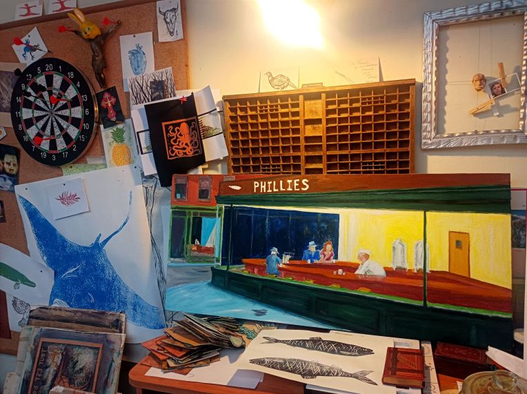 L’amour conduit même à des actes de barbarie monstrueux. Je n’ai rien dit, écrit ou dessiné sur la guerre en Ukraine, les attentats du 7 octobre ou les massacres en cours à Gaza ( et ailleurs) . Certaines de ces horreurs sont justifiées par l’amour, de la patrie, de dieu, de la famille ou de la liberté. La bêtise et la haine unissent bien souvent l’humanité. Et la haine est un poison qui se répend facilement, qui s’installe dans les cœurs et doit se combattre chaque jour au risque de détruire notre humanité. Il est important de combattre tous ceux qui alimentent cette haine et qui nous poussent à nous déchirer et à nous entretuer. C’est à chacun d’entre nous de trouver la force de lutter contre ceux qui ont intérêt à laisser la situation perdurer. Qu’avons nous à gagner à nous haïr? Contre la haine des salons, l’amour de la rue et des gens. Contre la haine et la désinformation anonyme des réseaux, il est important de vérifier l’information et urgent d’écouter et de faire confiance à ses voisins. De faire la paix, d’arrêter de se foutre de la gueule du monde.