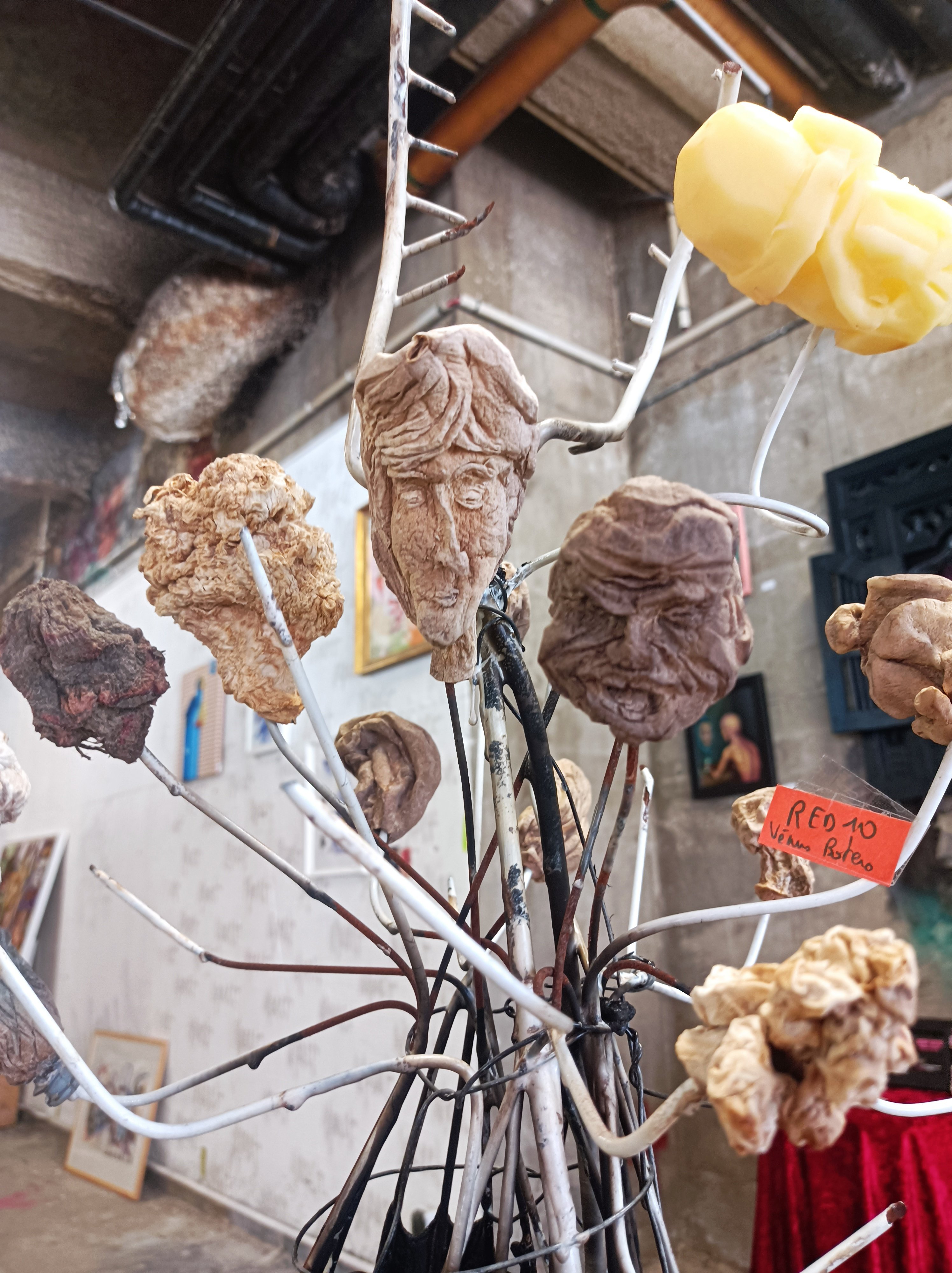 Vous vous inquiétiez pour eux? Voici quelques nouvelles en images. Beaucoup de politiques et quelques artistes. Mais l’art est toujours politique, sinon c’est de la déco. Et vu la tournure que prennent les évènements dans le monde, ma collection ne fait que commencer. Mes patates ne coûtent que 30€ l’unité, et je commence à en avoir beaucoup, alors si vous aviez la possibilité d’ adopter une pourriture ou deux ( une fois secs, ils ne sentent rien et ne demande aucun entretien) .