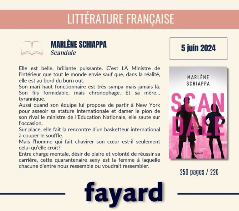 Le 5 juin vous pourrez hurler au scandale en ma compagnie. « Scandale », c’est le titre du nouvel opus de Marlène Schiappa. Je sens qu’on va se régaler.