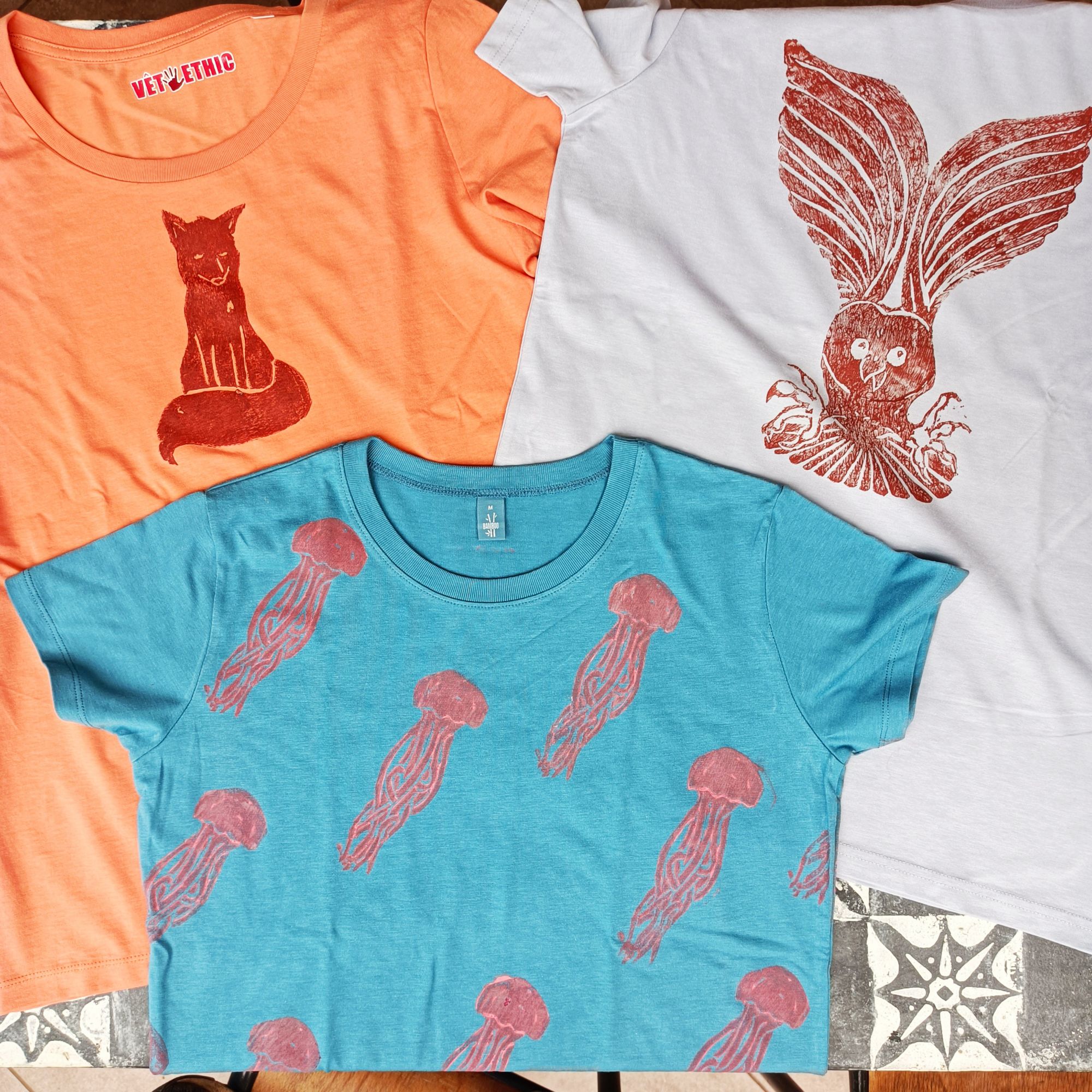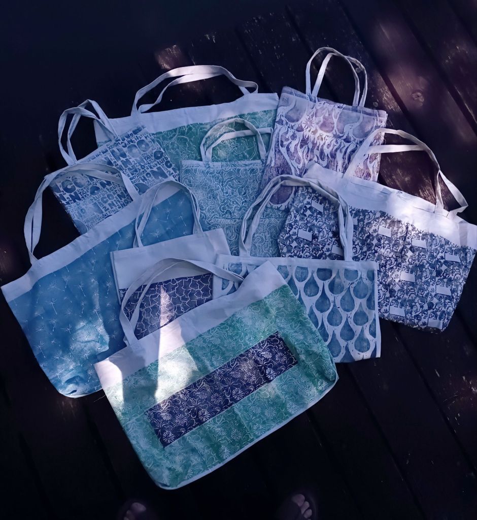 On commence par une superbe collection de sacs. Sac de courses, sac de plage, sac de manif, … Vous en ferez ce que vous voulez. Ils sont en coton ou en lin. Ce sont des impressions uniques et entièrement faits main. Made in france. 30€ l’ unité, pourquoi se priver, l’ été n’ est pas fini.
