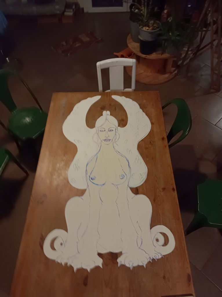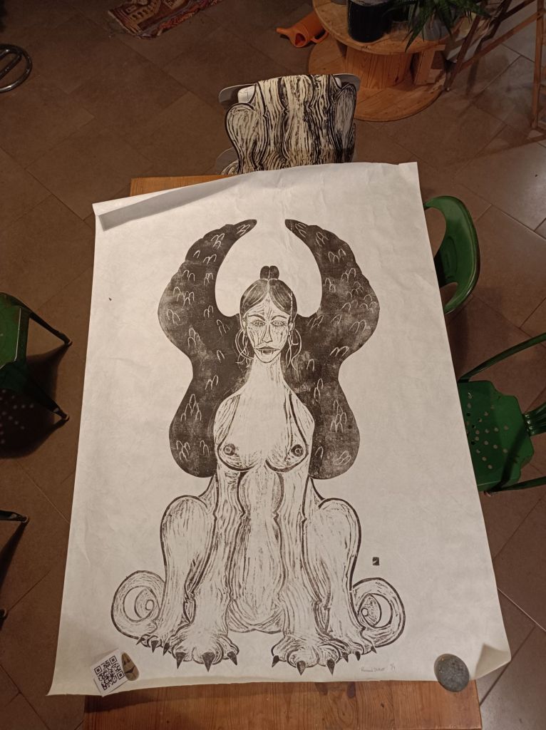 Après vérification on l’appelle aussi sphinge ailée pour les puristes. La mienne mesure environ 1m 50 par 90 cm, autant dire que je ne l’ai imprimé qu’une fois pour l’instant. Votre prix sera le mien:
