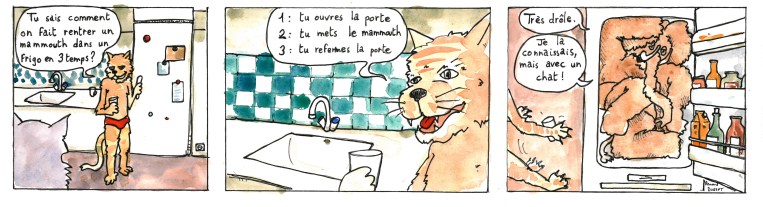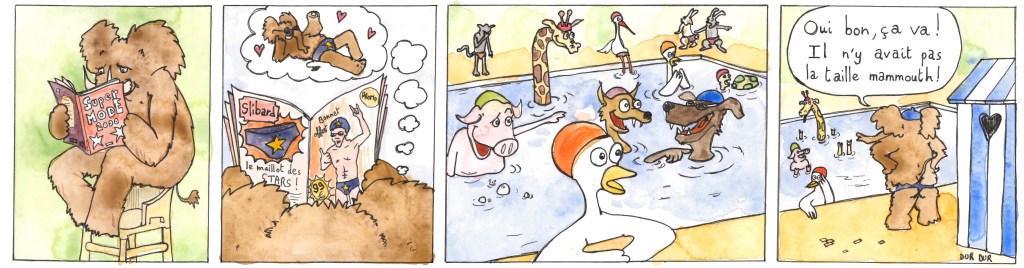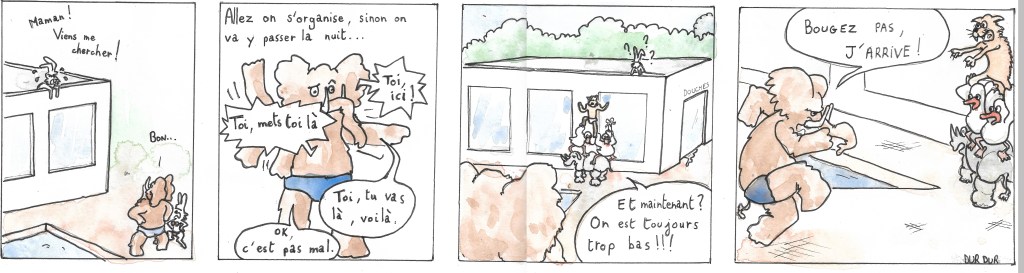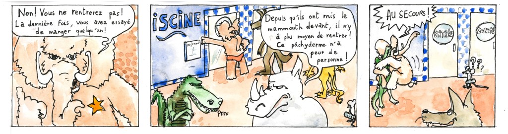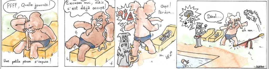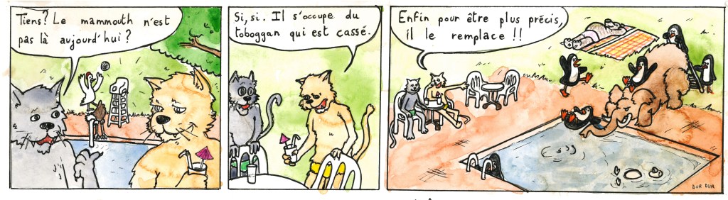 Cet été je vous propose du décongelé. Chaque semaine retrouvez les aventures de ce petit animal adorable. Les scénarios ne sont pas ( complètement) de moi. Merci à Olivia, Coline, Abel, Anouk, Marion et à tous ceux qui voudront contribuer à faire vivre leur âme d’enfant en quelques cases.